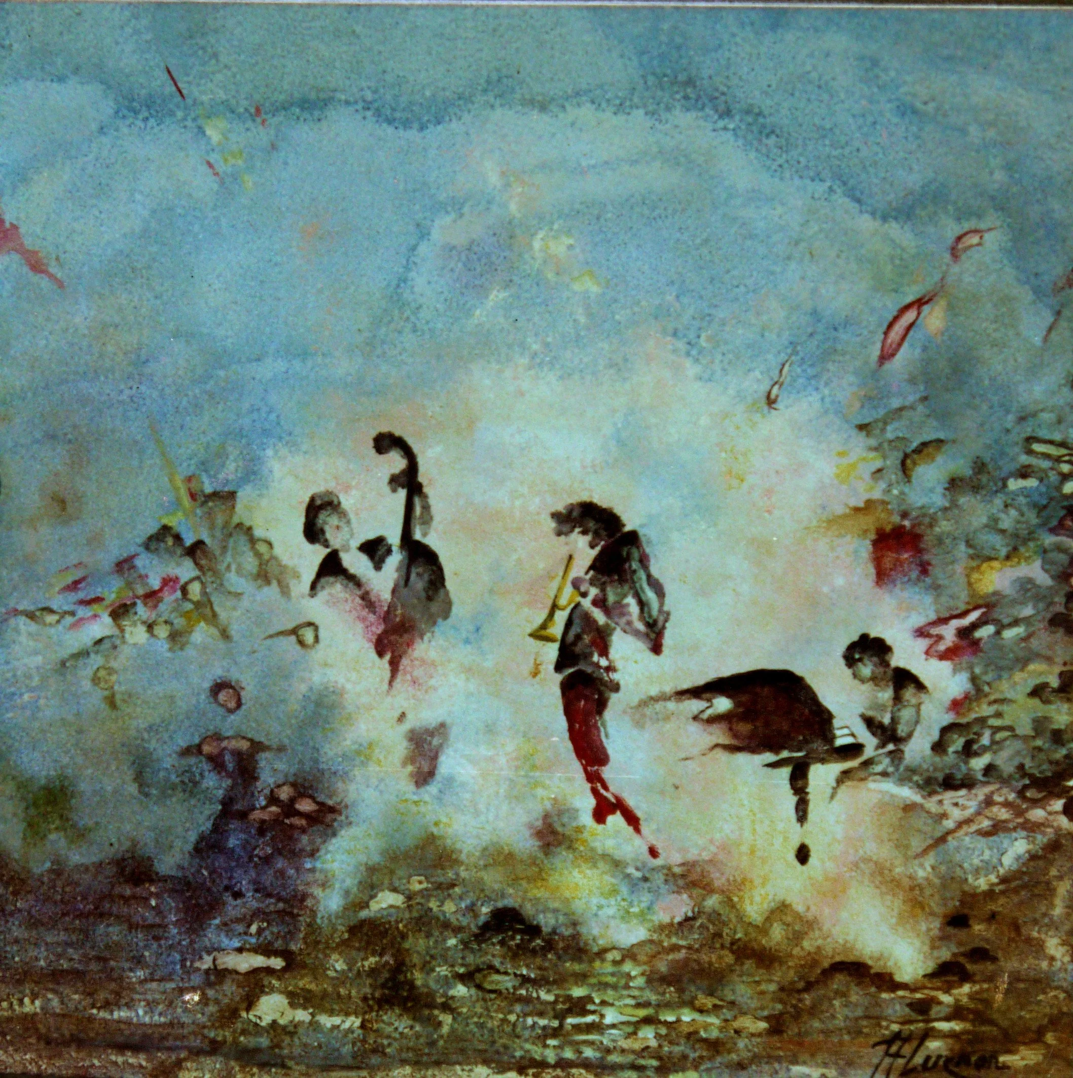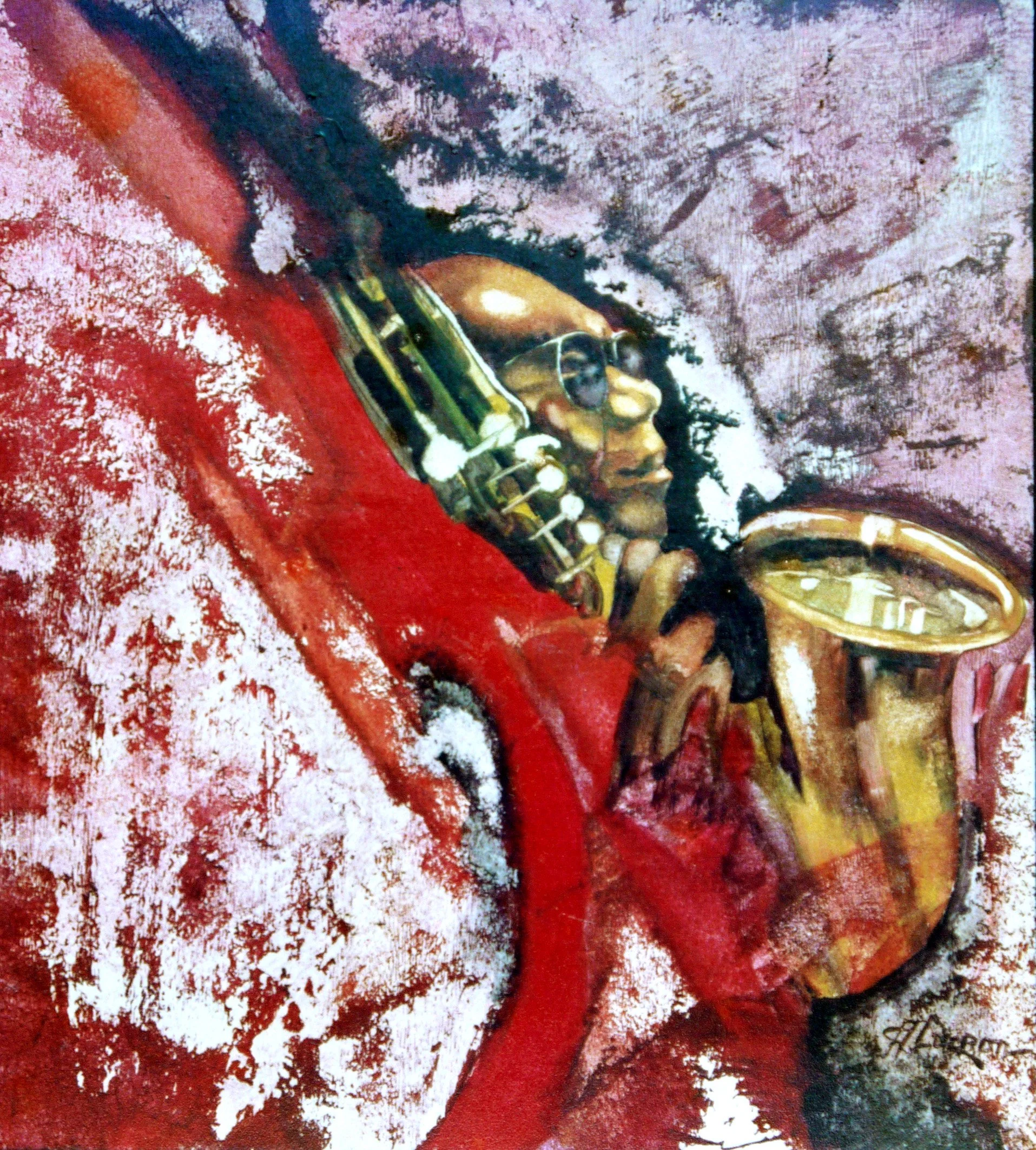 Alain had the opportunity to exhibit solo in Papetee, Tahiti, a series of paintings based on music, especially jazz. This experience proved quite mystical as the paintings were produced while listening to the corresponding piece. Each stroke of the brush, each colour was a translation of the musical tempo, of its expression. Indeed in music as in painting the artists develops its own calligraphy. This happens when body and soul work in unison.