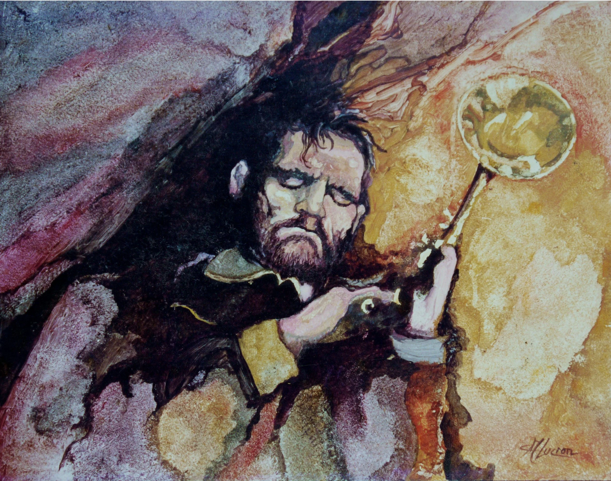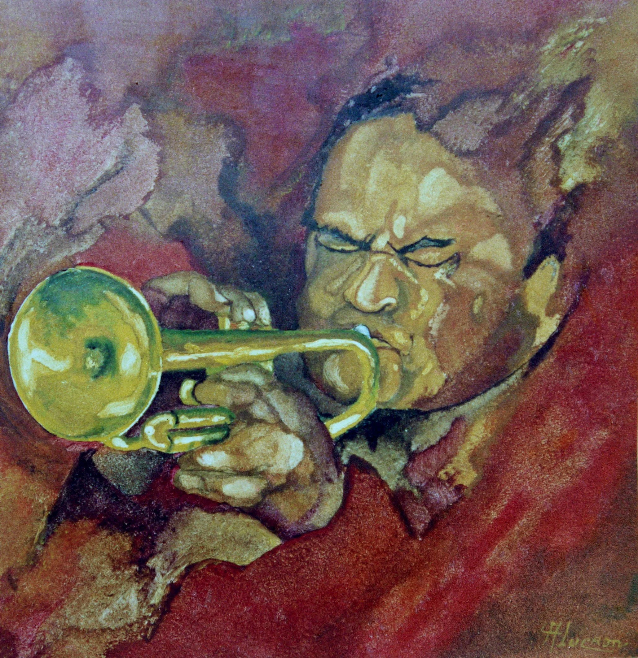 Alain a eu l’occasion de faire une exposition solo, inspirée d’oeuvres classiques et surtout des grands du Jazz à Papeete, Tahiti. Cette expérience a été quasi mystique car il s’agissait de peindre en écoutant les morceaux correspondant aux œuvres peintes. Il lui fallut se plonger dans un état de transe afin de transmettre à travers le mouvement, à travers la ligne, à travers la couleur, la respiration musicale. En effet en musique comme en peinture l’artiste crée sa propre calligraphie et celle-ci prend forme quand corps et esprit jouent à l’unisson.